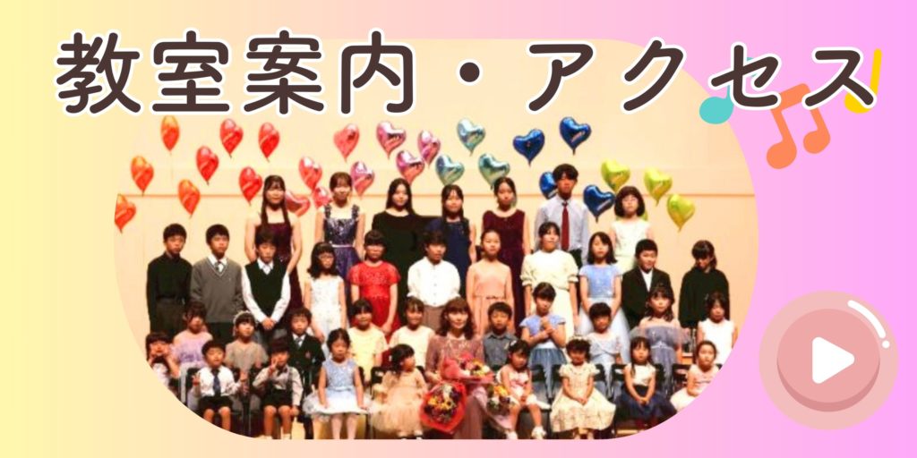 当教室は、矢野小学校から徒歩3分、JR矢野駅から徒歩10分。1歳からシニアの方までのレッスンを行っています。
